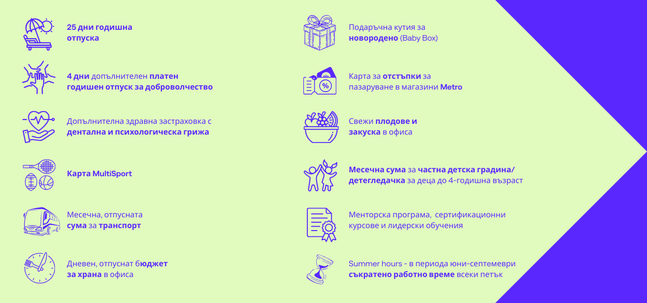 - Различните събития за благотворителност, wellbeing, както и забавления допринасят за разнообразяването на работното ежедневие и сплотяването на екипите със свежи и интересни занимания.