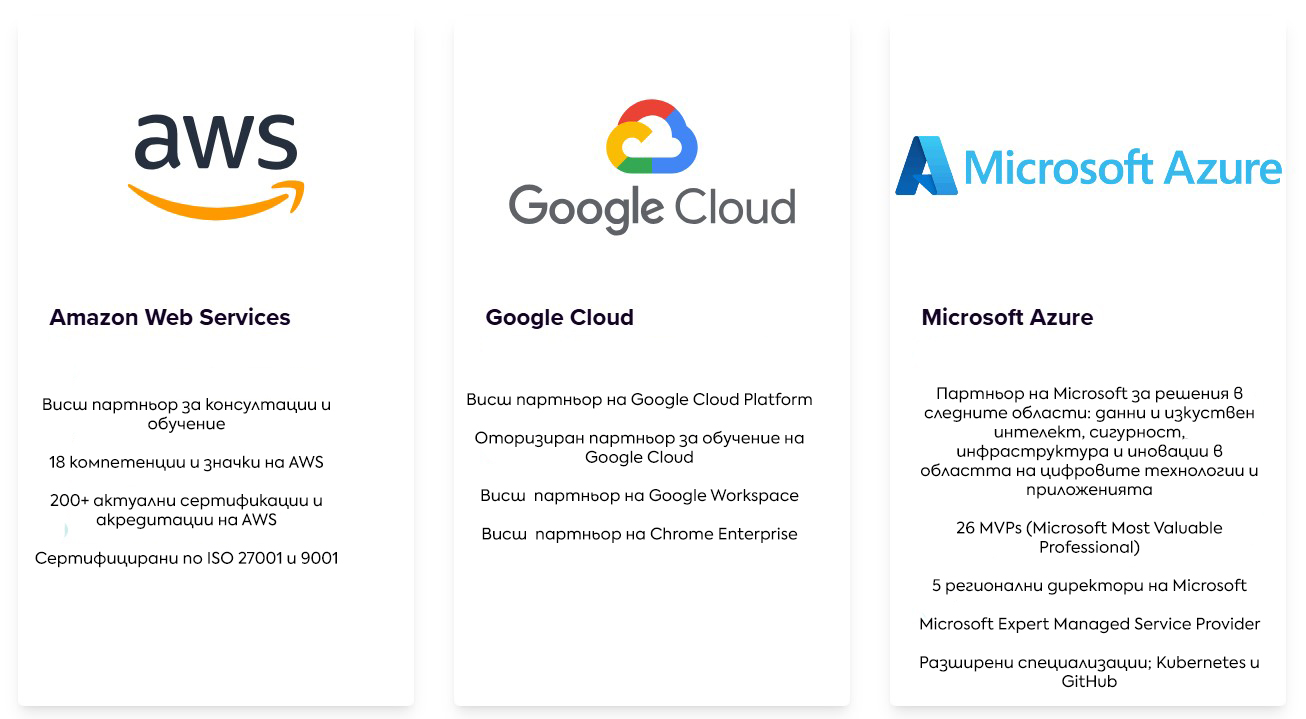 Xebia, чиято експертиза е в областта в облачните решения, си партнира успешно с AWS, Microsoft Azure и Google Cloud.