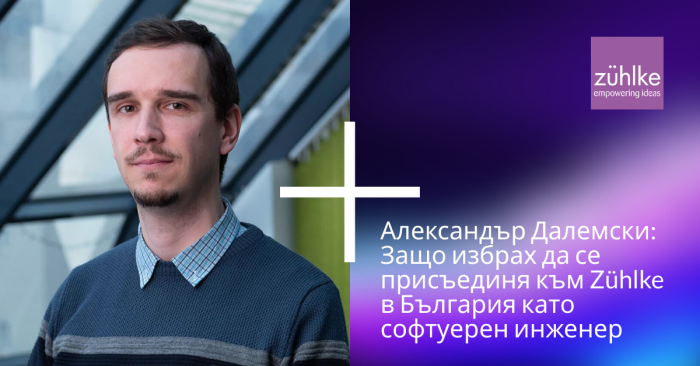 Разсъждавайки върху изминалите 20 месеца в Zühlke в България, Александър обяснява защо би препоръчал компанията на други софтуерни инженери: „Работим по разнообразни проекти в различни индустрии и домейни, така че независимо от интересите ви, има голяма вероятност да получите възможност да работите по нещо, което ви вдъхновява. Освен това колегите ни са с различен опит и познания, което прави средата изключително ценна – имате шанс да бъдете част от общност от съмишленици, да решавате интересни проблеми и да се развивате заедно с тях.“