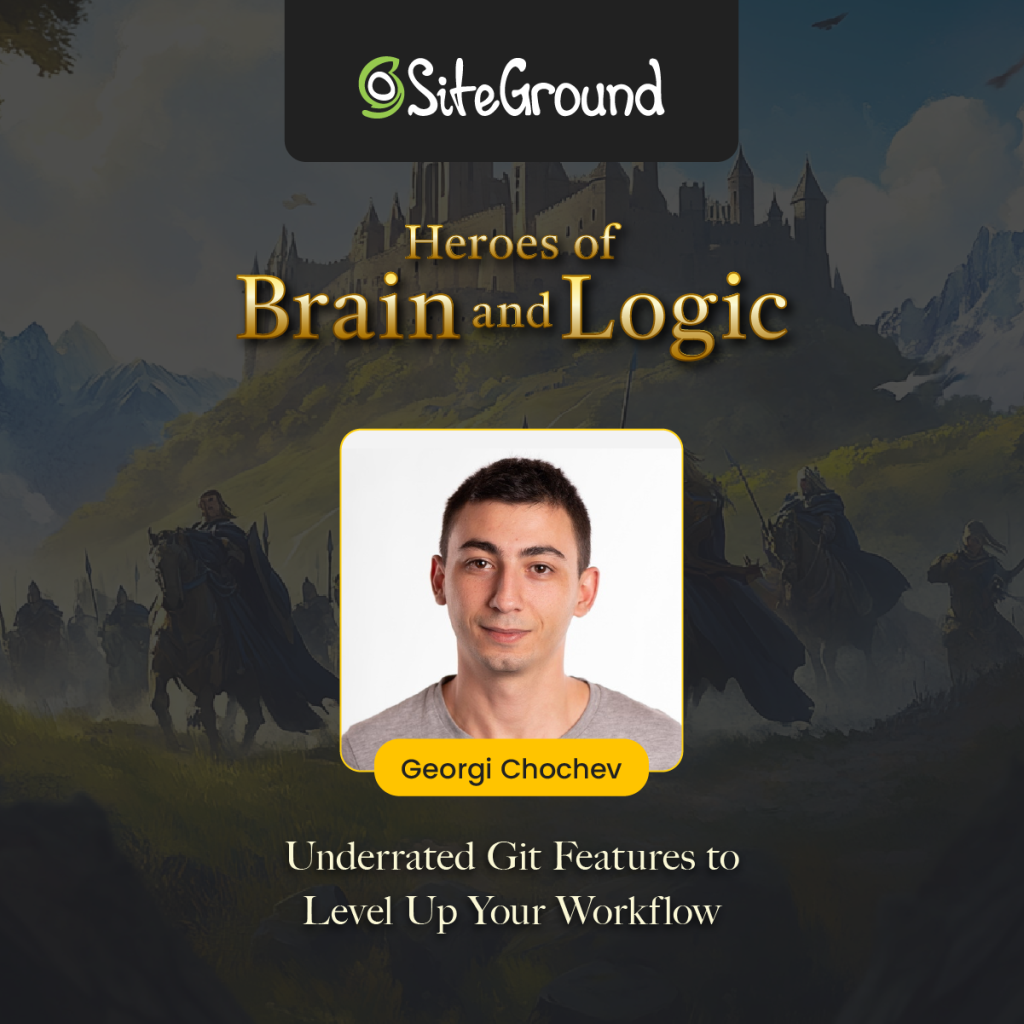 Георги Чочев (front-end разработчик в SiteGround) ще покаже как подценени функции на Git могат да ускорят работния процес, да улеснят управлението на конфликти и да превърнат разработчиците в истински магьосници на версионния контрол.
