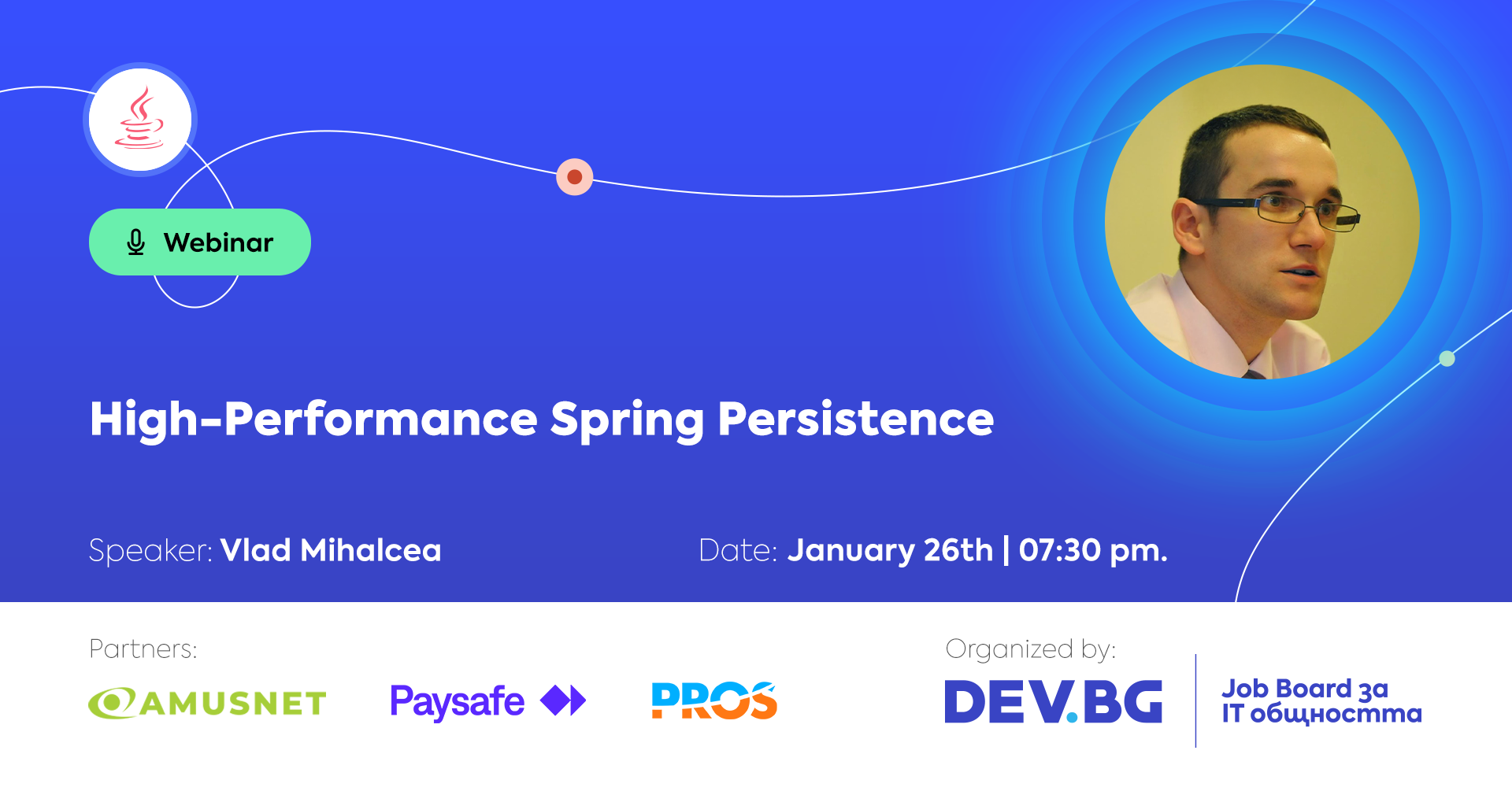 Добре дошли в Java потребителската група на DEV.BG. Всеки месец организираме по едно Java събитие, като всички събития са безплатни. Темите на събитията ни не са подходящи за начинаещи програмисти.